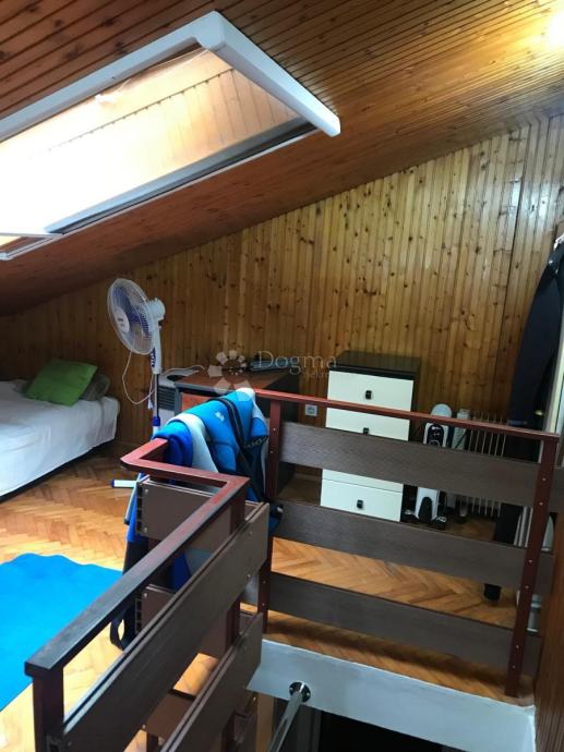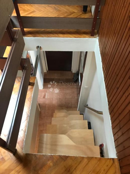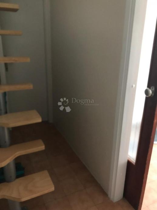 Stan je smješten na 4. katu u zgradi bez lifta, sastoji se od kuhinje i dnevnog boravka, kupaonice. Unutarnje stubište vodi na drugu etažu visoko potkrovlje gdje su smještene dvije spavaće sobe. Stan ima terasu površine 8m2 na koju se izlazi iz dnevnog boravka. Stanu pripada drvarnica 4m2.