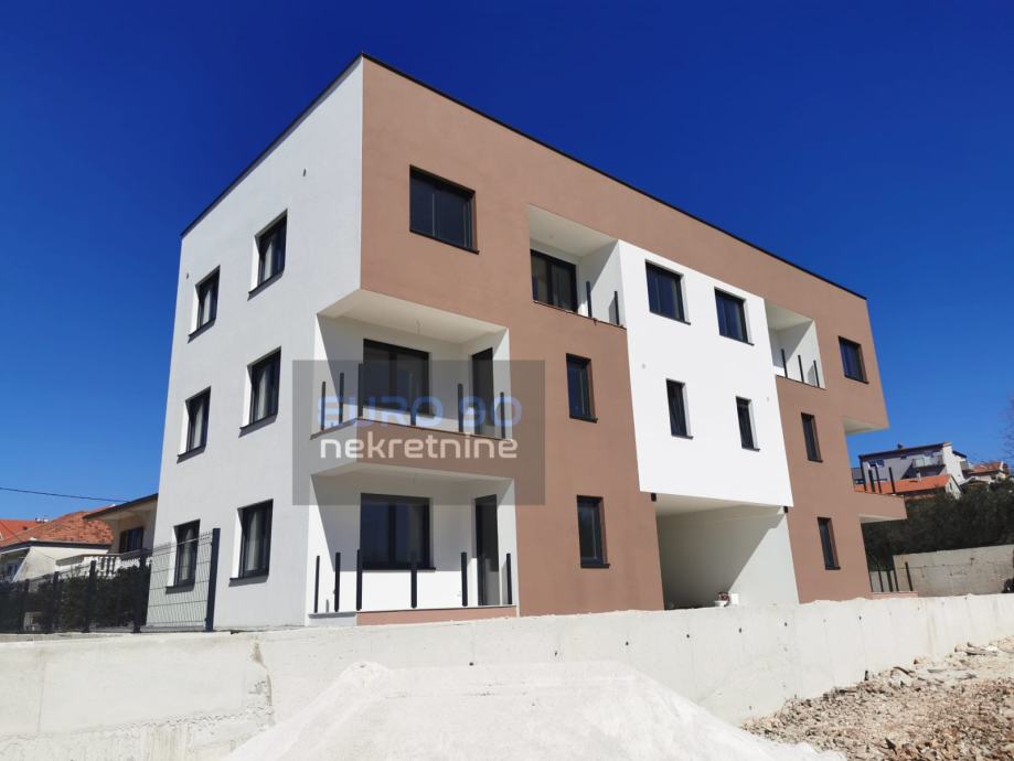 Stan se nalazi na 2.katu stambene zgrade sa sedam stambenih jedinica. Stan ima 66,23 m2 neto površine stana, sa svim pripatcima iznosi 94,33 m2 ,te mu pripadaju, KROVNA TERASA S POGLEDOM NA MORE, dva vanjska parkirna mjesta , ostava/drvarnica koja se nalazi na 2.katu i stubište koje vodi do krovne terase.