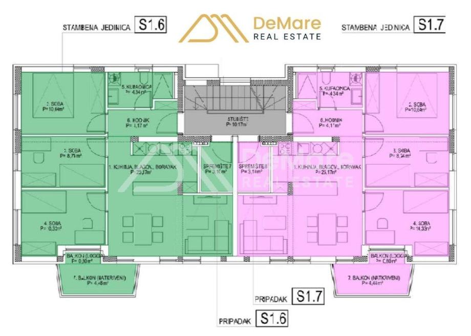 Ukupna površina stana sa svim pripadcima iznosi 177,99 m2, a korisna obračunata vrijednost stana iznosi 94,33 m2.