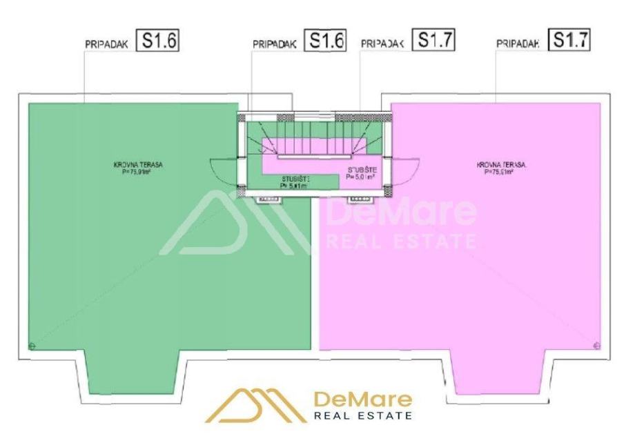 -- dio stubišta (5,10 m2) koje vodi direktno do prekrasne krovne terase (75,91 m2),