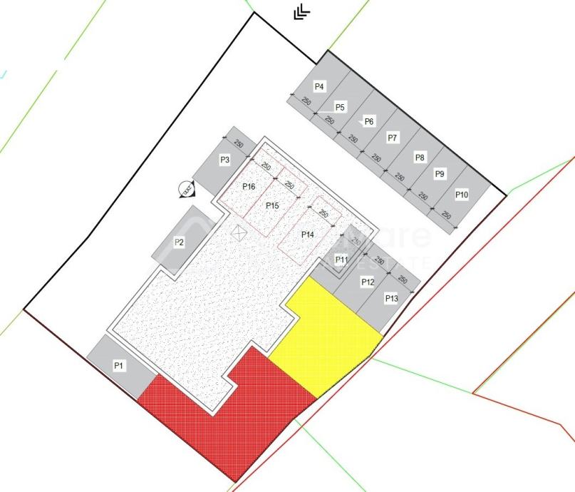 U prizemnoj etaži nalaze se tri natkrivena parkinga i dvije stambene jedinice, a na uređenoj okućnici zgrade, osigurana su dva vanjska parkirna mjesta po stambenoj jedinici. Na svakoj gornjoj etaži (prvi i drugi kat) smještana su 3 stana.