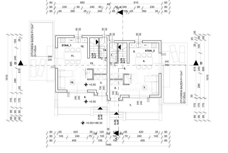 Trenutno su u izgradnji dvije kuće s bazenima (duplex kuća).