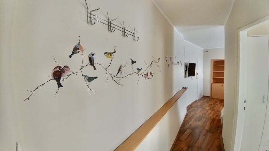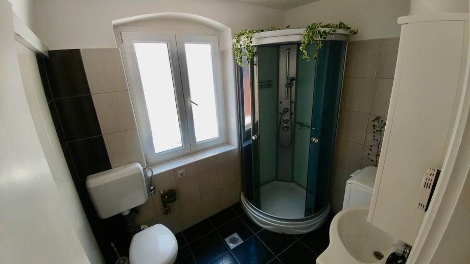 Stan se nalazi na trećem katu tradicionalne, kamene zgrade. Svaka prostorija ima lijepe, velike prozore u PVC stolariji te je stan ispunjen obiljem sunčevog svjetla. Stan se prodaje kompletno opremljen.