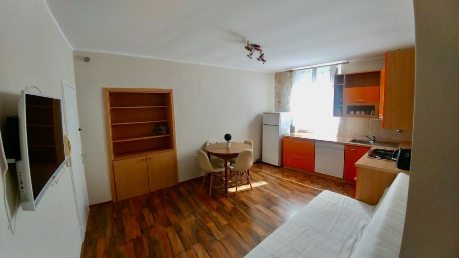 Sastoji se od hodnika, potpuno opremljene kuhinje s blagovaonicom i udobnog dnevnog boravka, jedne veće i jedne manje spavaće sobe te moderne kupaonice s WC-om.