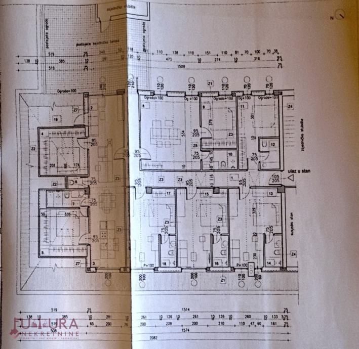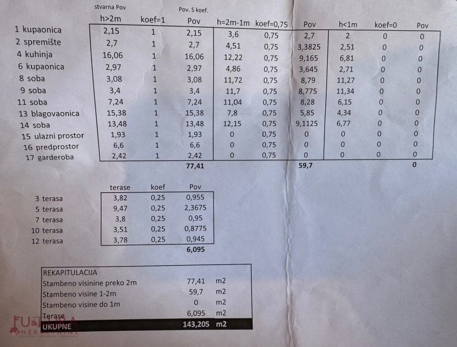 Sastoji se od: pet spavaćih soba, dnevnog boravka, kuhinje + blagovaona, garderobe, dvije kupaonice i pet terasa.