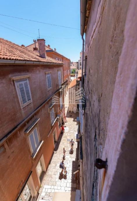 Prodaje se stan na drugom katu stambene zgrade smješten u samom srcu zadarskog Poluotoka, u strogom centru grada, na jednoj od najtraženijih lokacija . Ukupna površina stana iznosi 53,30 m2 a sastoji se od tri sobe, kuhinje s blagovaonicom, kupaone i terase. Stanu pripadaju i dva tavana koji rekonstrukcijom mogu postati sobe za iznajmljivanje. Zbog svoje pozicije stan je idealan za bavljenje turizmom tokom cijele godine a također može se prenamijeniti i u uredski prostor.