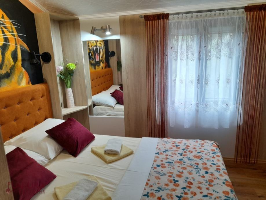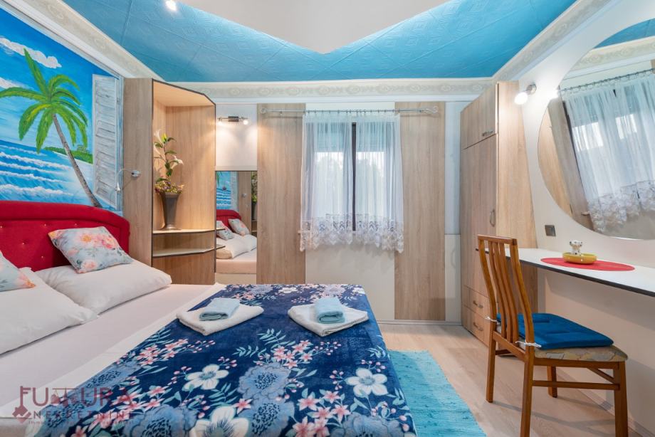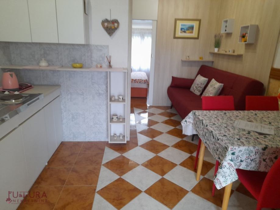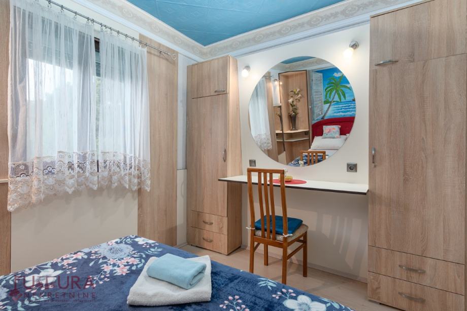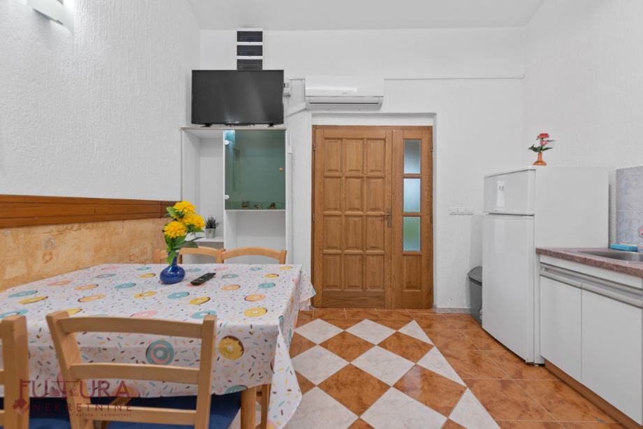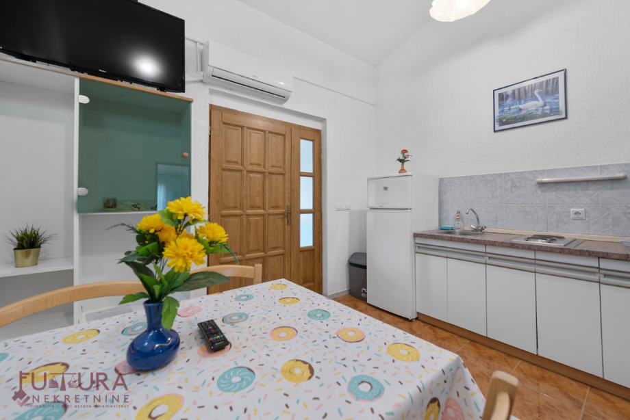 - apartman 1: jedna spavaća soba, dnevni boravak + kuhinja + blagovaona, kupaonica i terasa.