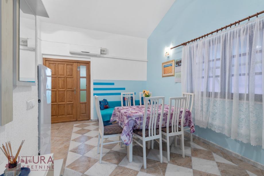 Zadar - Posedarje, prodaje se dvojna kuća dvokatnica od 700 m2 stambene površine i 771 m2 okućnice izgrađena na zemljištu od 1084 m2. Polovica objekta je izgrađena 1990 godine druga polovica 2000 godine te je kompletno namještena i opremljena.