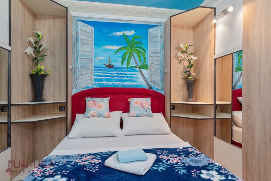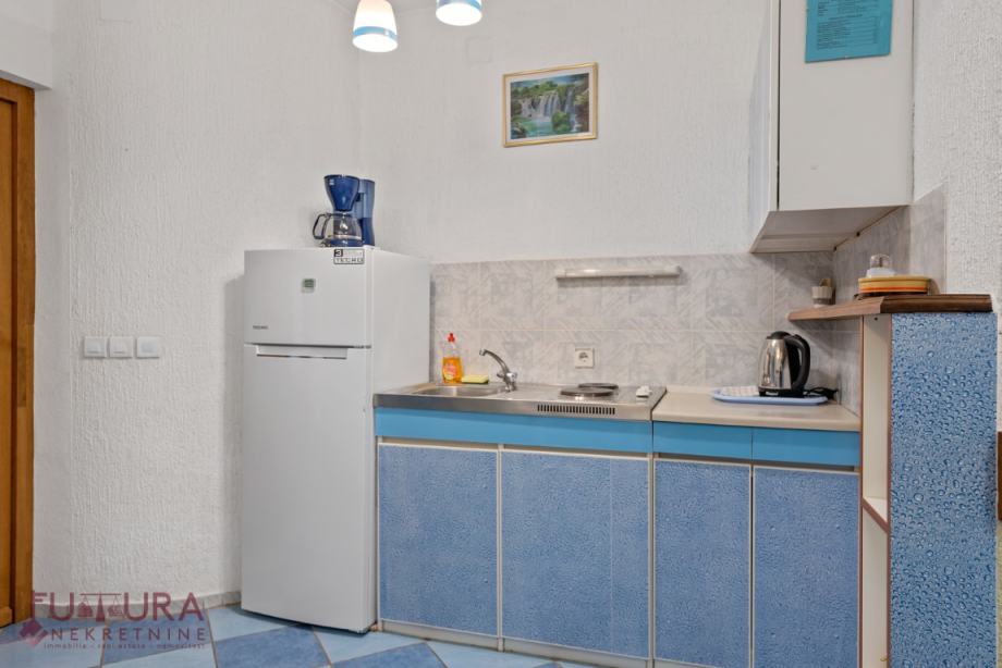 - apartman 7: jedna spavaća soba, dnevni boravak + kuhinja + blagovaona, kupaonica i terasa.