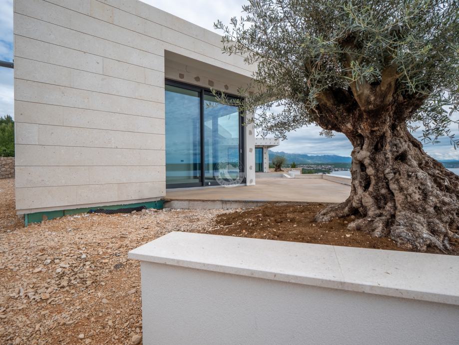 Vila je okružena masivnim kamenim zidom koji ne samo da osigurava privatnost, već i dodatno ističe luksuzan izgled nekretnine. Grijani infinity bazen s integriranim jacuzzijem pruža prekrasan pogled i poziva na opuštanje.