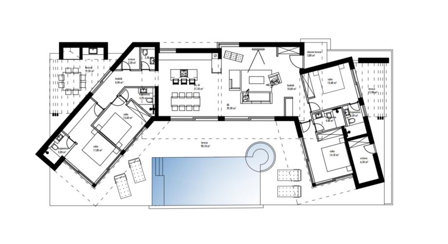 Schuco stolarija osigurava optimalnu svjetlost i ventilaciju, dok vas prostrani dnevni boravak poziva da se opustite uz nevjerojatan pogled na beskonačno plavetnilo mora. Infinity edge grijani bazen s jacuzzijem pruža osjećaj luksuza i privatnosti, dok podno grijanje cijele kuće osigurava ugodnu toplinu u svim prostorijama.