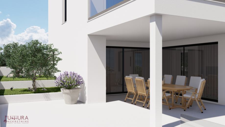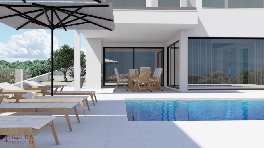 Zadar - Posedarje (Pavlinka), prodaje se luksuzna samostojeća kuća katnica od 150 m2 stambene površine i 313 m2 okućnice, u izgradnji, visokokvalitetna gradnja.