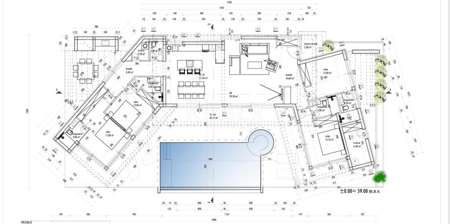 Infinity bazen izrađen je od armiranog betona te je opremljen toplinskom pumpom za grijanje vode, a unutar bazena integriran je jacuzzi kao dodatna oaza za uživanje i opuštanje. Uživajte u druženjima u vanjskoj kuhinji smještenoj u vrtu, dok nježni povjetarac donosi mirise mora. Vila nije priključena na gradsku kanalizaciju, već ima vlastiti biopročišćivač, osiguravajući ekološki prihvatljiv sustav otpadnih voda koje se mogu iskoristiti za vrt.