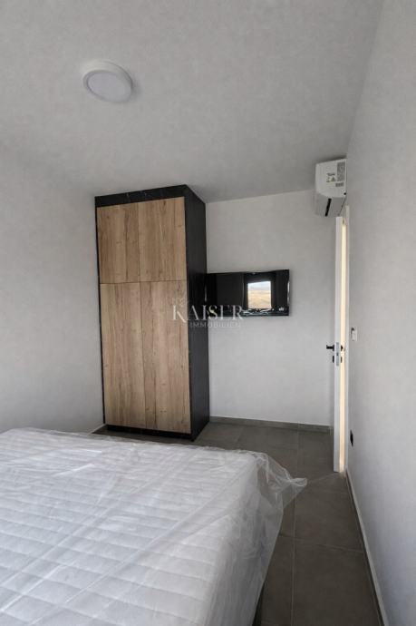 Jedna spavaća soba ima vlastitu kupaonicu, dok je druga kupaonica smještena u hodniku. Stan se prodaje potpuno namješten, s kvalitetnim i moderno odabranim namještajem, što omogućuje trenutačno useljenje ili nastavak turističkog najma bez dodatnih ulaganja.
