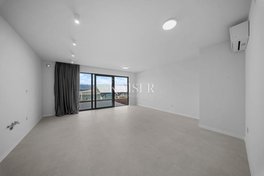 Dnevni boravak ima izlaz na prostranu terasu površine 17,94 m², idealnu za boravak na otvorenom, objedovanje ili opuštanje uz more.