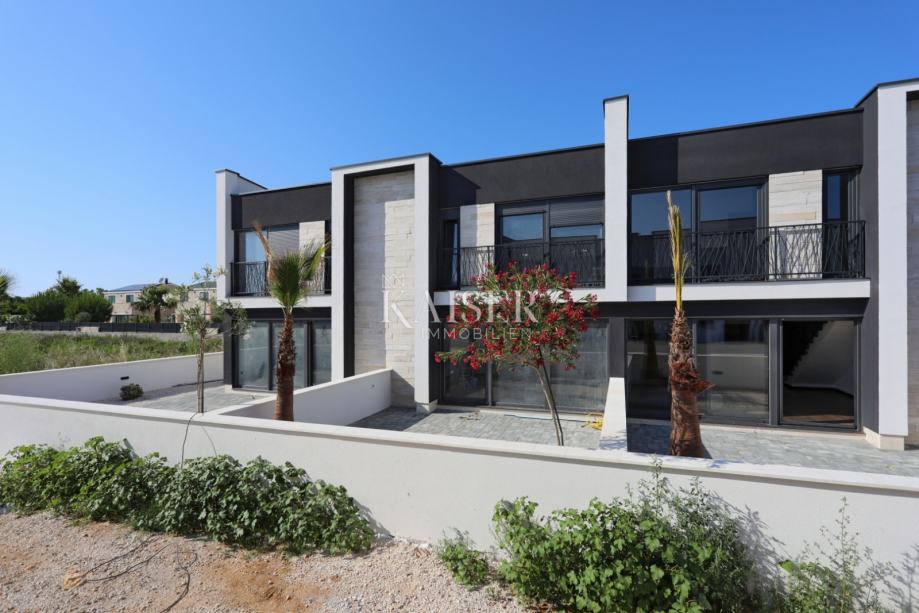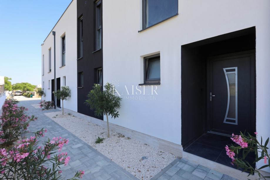 Kaiser Immobilien u svojoj ponudi ima atraktivnu zgradu u nizu koja se sastoji od četiri moderna stana. Ova nekretnina smještena je u mirnom i tihom dijelu Privlake, na samo 400 metara od centra i obale mora, čime se idealno uklapa u potrebe obiteljskog života ili ugodnog odmora. Svaki stan u ovoj stambenoj zgradi projektiran je s naglaskom na funkcionalnost i suvremeni dizajn, pružajući visok stupanj udobnosti i privatnosti. Stanovi su prostrani, svijetli i raspoređeni tako da maksimalno iskorištavaju prostor. Svakom stanu pripada vlastiti vrt i terasa, a zgrada ima osigurana parkirna mjesta.
