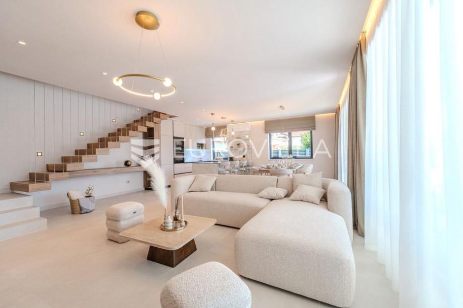 In a quiet and exclusive area of Privlaka, a modern villa is situated with a total usable interior area of 214.80 m², a gross building area of 264.37 m², and an impressive total floor area including terraces of 412.80 m². Designed across three levels, this property represents a harmonious blend...