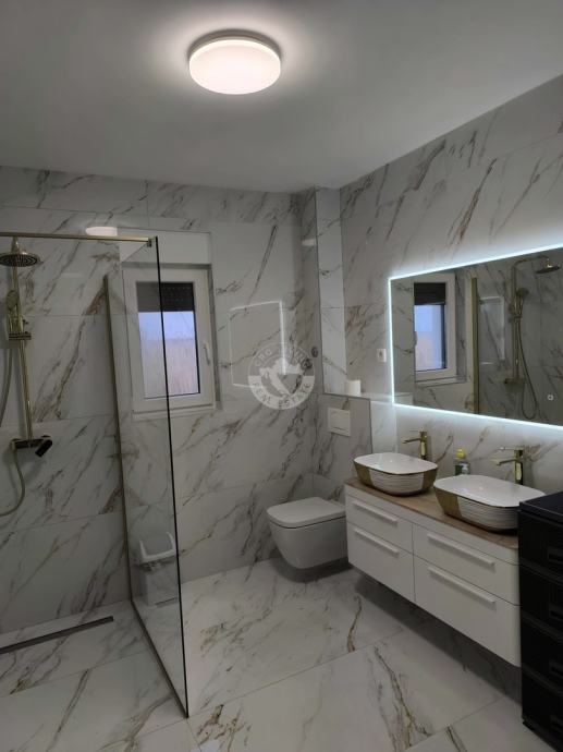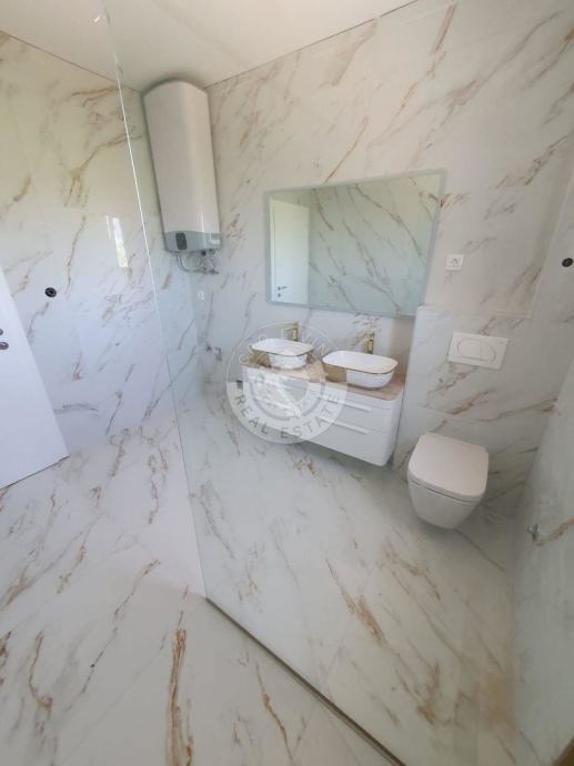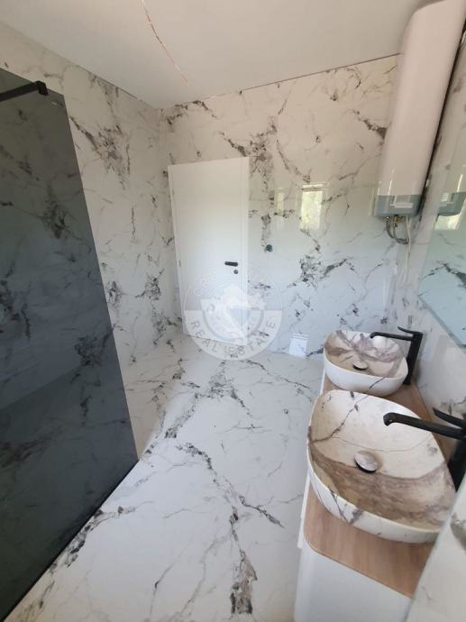 - na podovima u kuhinji, dnevnom boravku i terasi stavljene su keramičke pločice ( I klasa ) dok su u spavaćim sobama na podovima SPC podne obloge,
