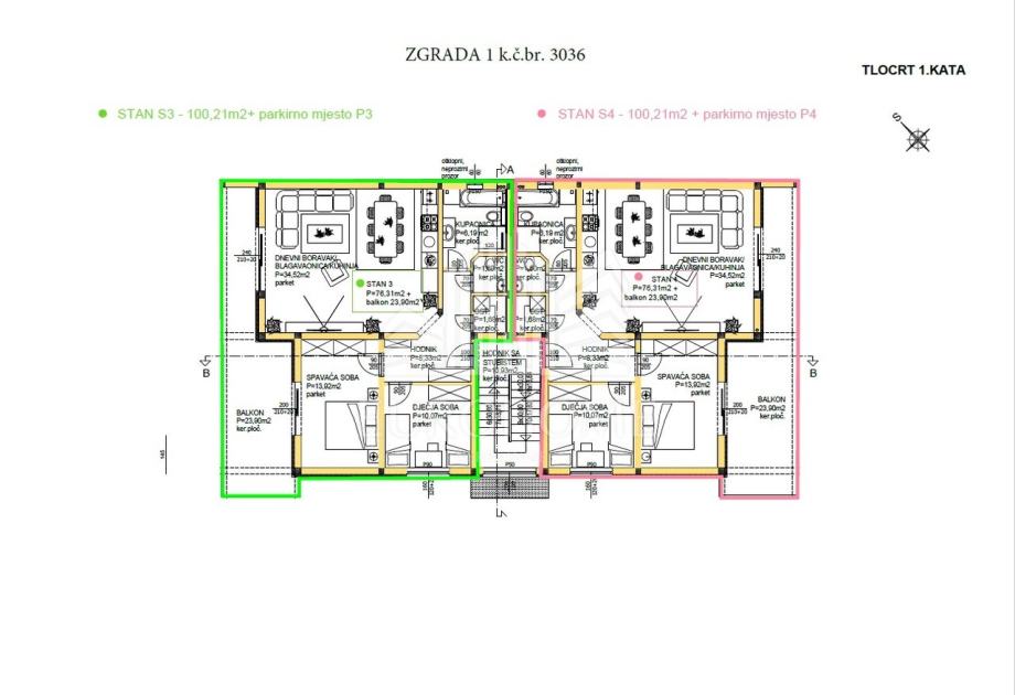 ZADAR-PRIVLAKA Prodaje se luksuzna novogradnja na 1katu ( U ZGRADI 1 STAN S4 100.21 +PARKIRNO MJESTO OZNAKE P3) 90 metara od mora u centru