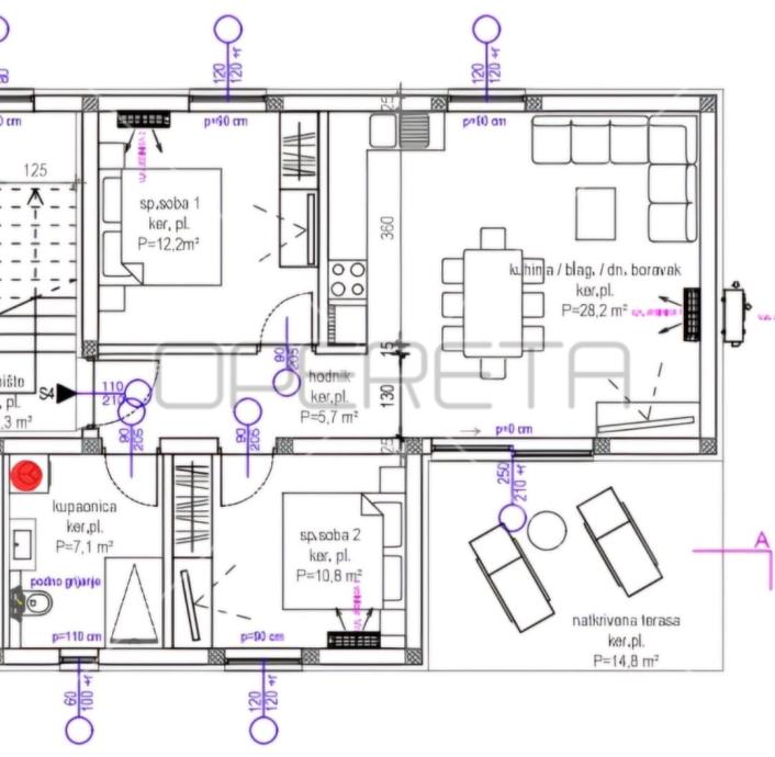 U stambenoj zgradi sa samo četiri stana prodaje se stan stambene površine 92,15m2 s krovnom terasom