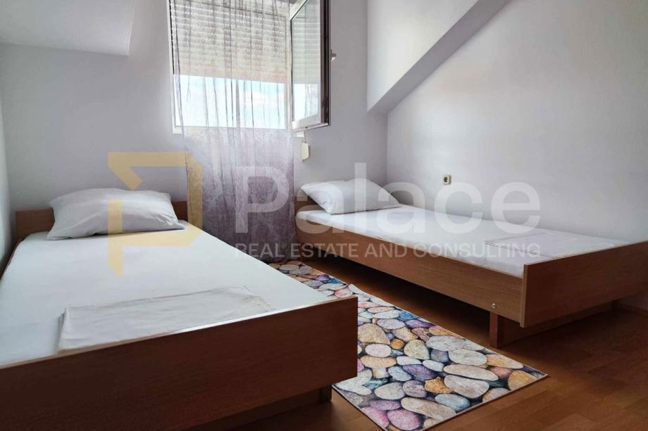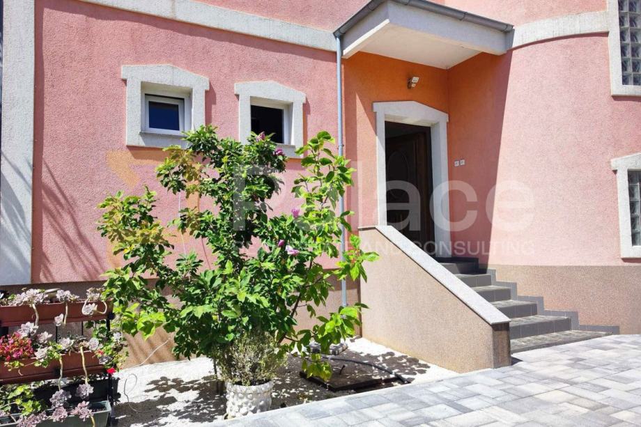 Kuća ima tri etaže na kojima se nalazi 10 apartmana, prizemlje, prvi i drugi kat, kuća još ima i privatan parking za 12 automobila.