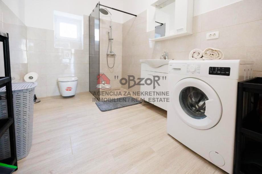 Nedavno adaptirana 2025. godine, kuća je opremljena kuhinjom s aparatima, perilicom posuđa, perilicom rublja, televizorom te krevetima, što omogućuje trenutni useljenje i svakodnevnu funkcionalnost. Grijanje je riješeno putem električne energije, a klimatizacija dodatno doprinosi ugodnoj temperaturi kroz cijelu godinu. Položaj na mirnoj i vrlo sunčanoj lokaciji dodatno naglašava kvalitetu života koju ova nekretnina pruža.