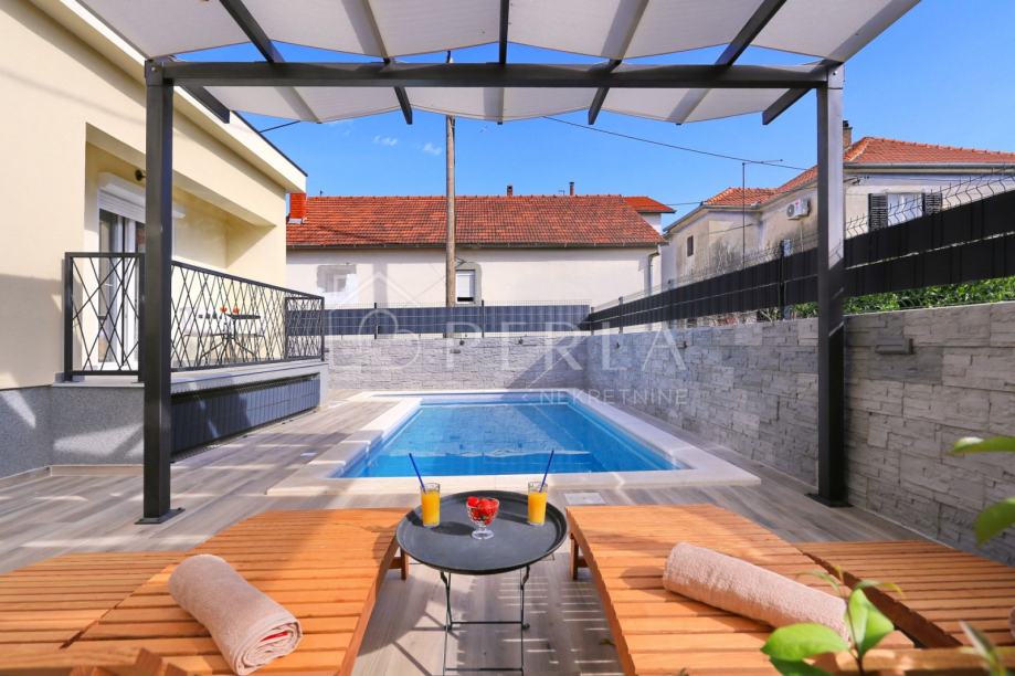 U prekrasnom i mirnom kvartu Arbanasi u Zadru smjestila se ova šarmantna, moderno uređena prizemnica s privatnim bazenom i sunčalištem.