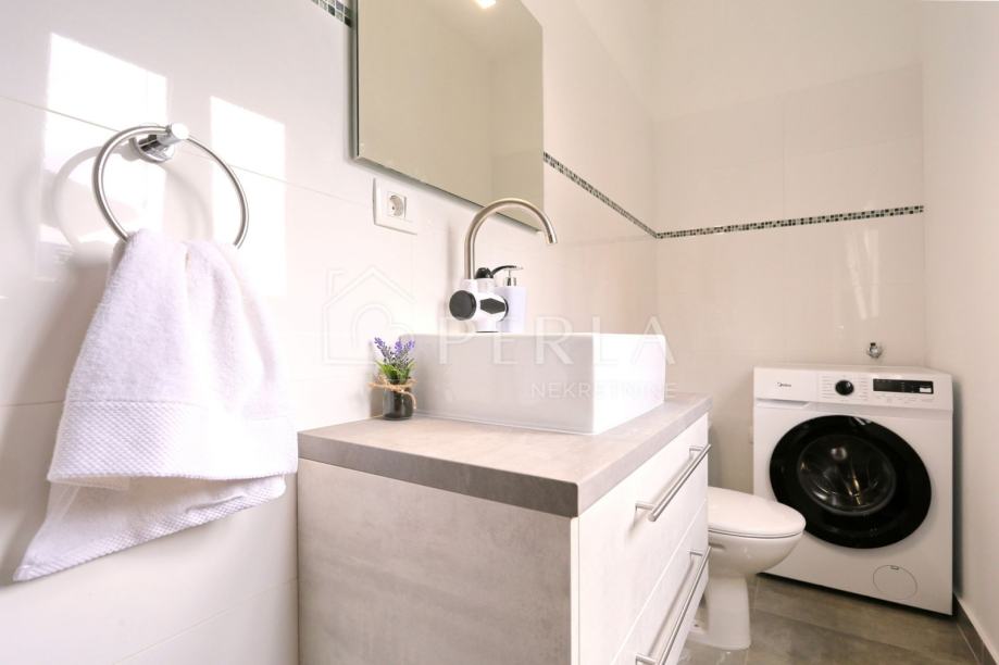 Nekretnina je u potpunosti renovirana 2020. godine, obložena termofasadom, te se prodaje kompletno namještena, spremna za useljenje ili turističku djelatnost.