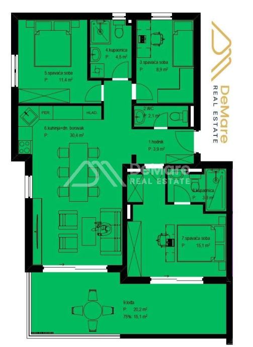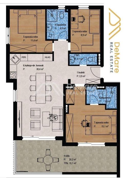 2. KAT / S8 -PENTHOUSE Stan s 3 spavaće sobe