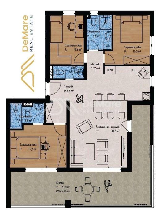 2. KAT / S7 -PENTHOUSE Stan s 3 spavaće sobe
