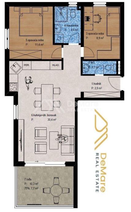 - Dnevnog boravka, kuhinje i blagovaonice / 30,36 m2