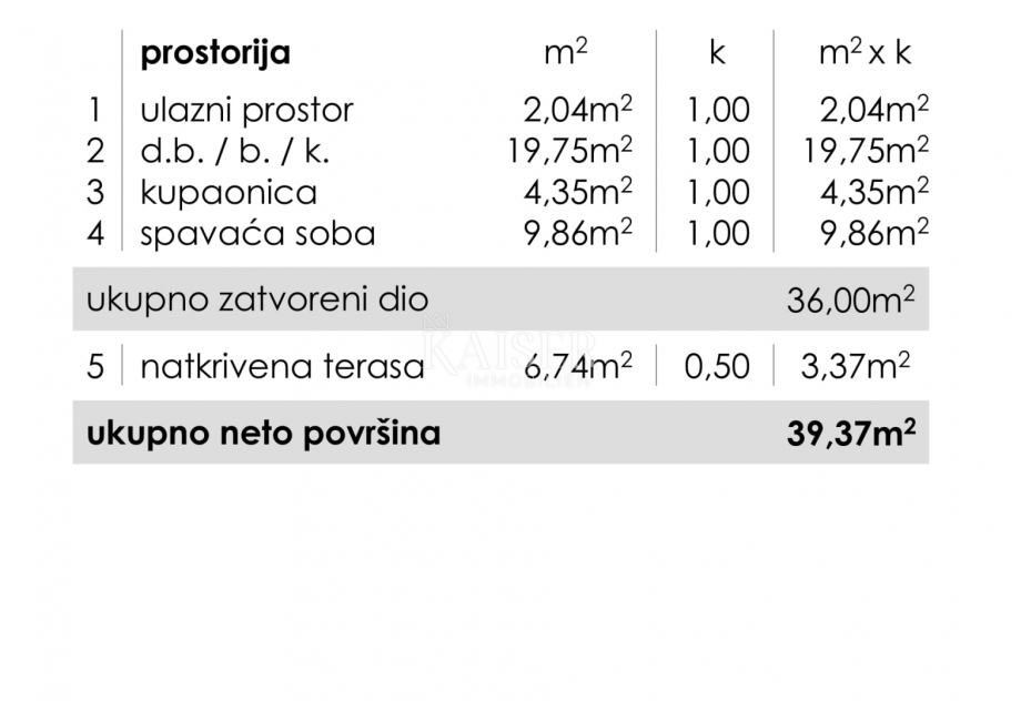 Stanu pripadaju 2 parkirna mjesta (garažna) i ostava u podrumu.