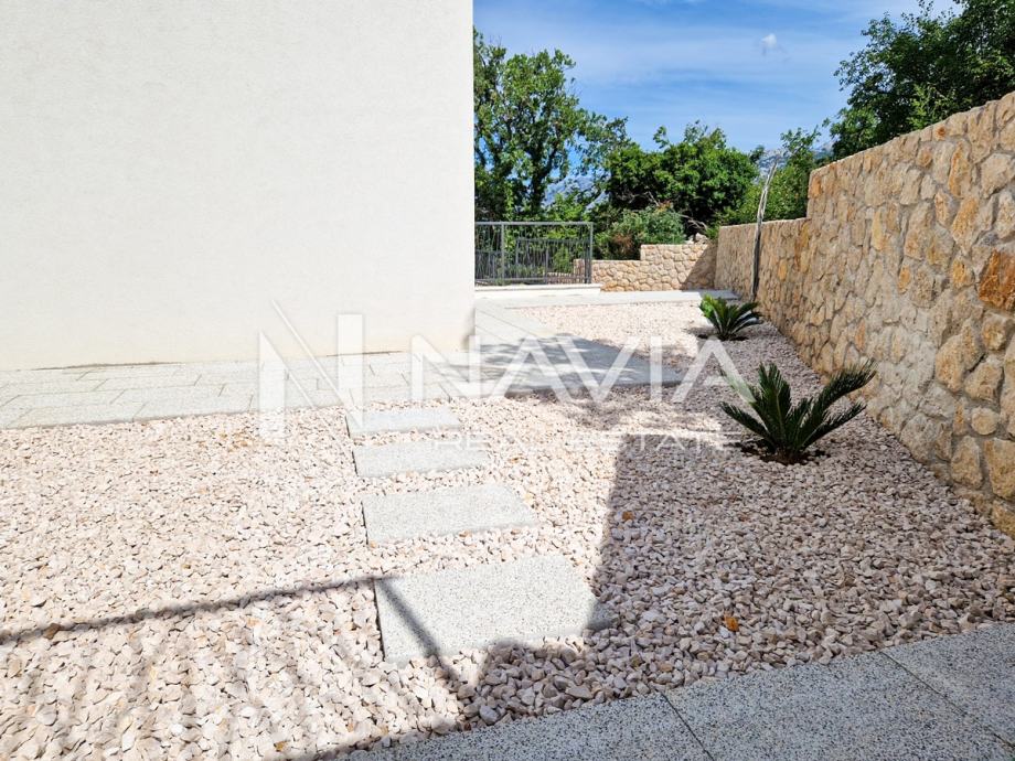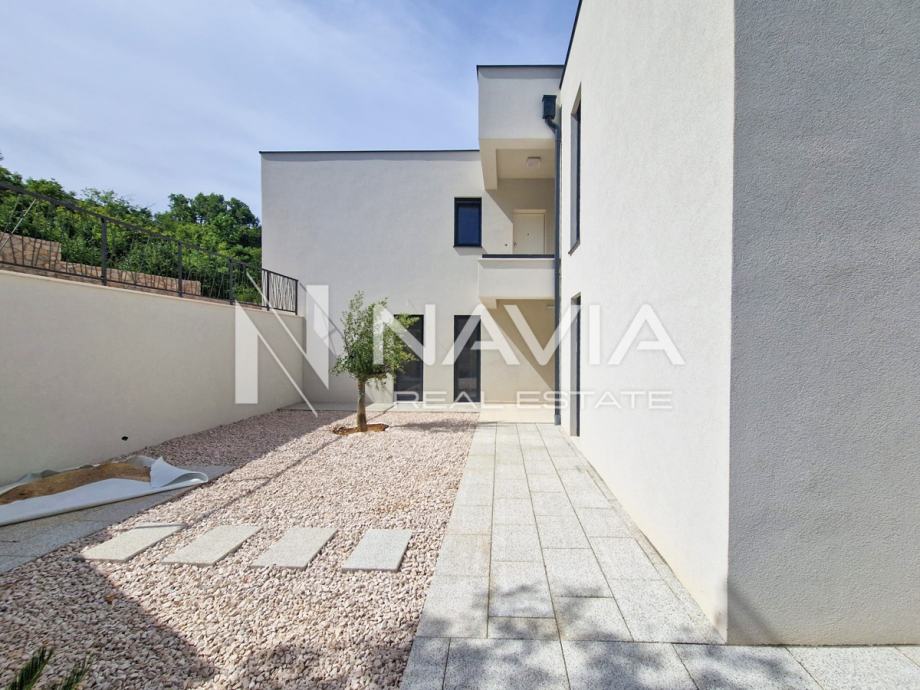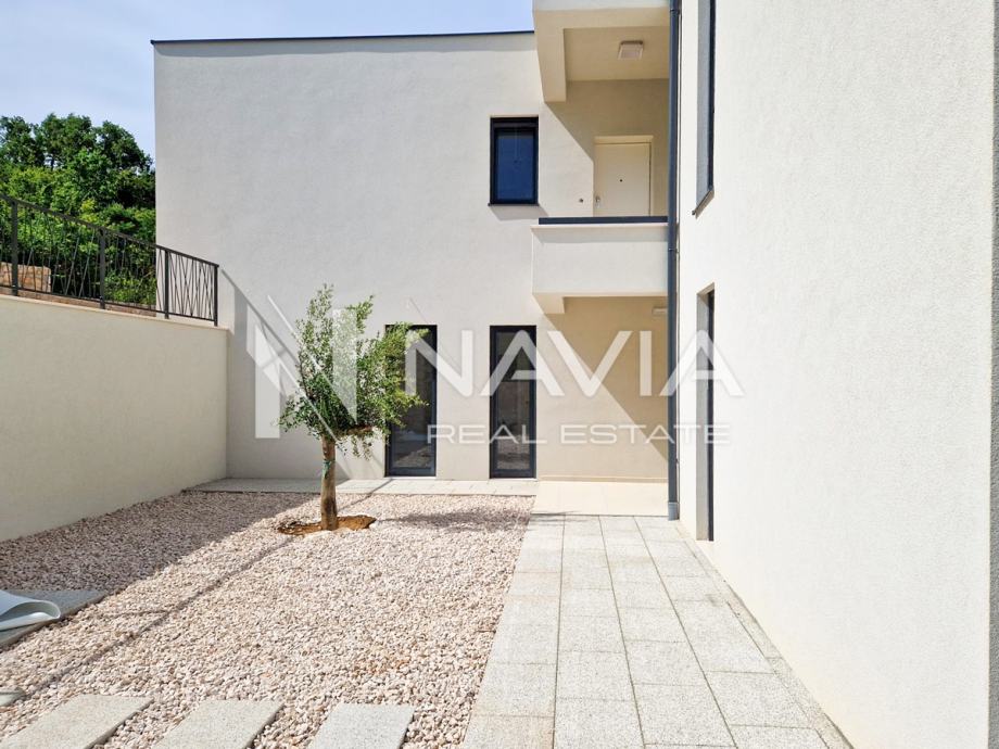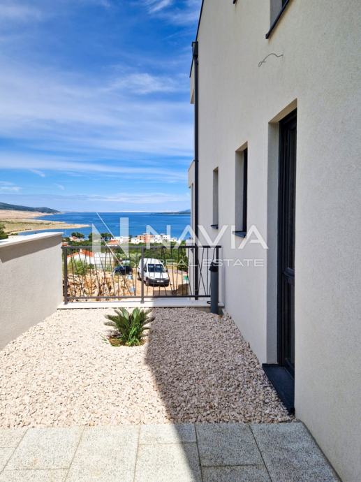 Prodaje se moderni stan u prizemlju novogradnje u mirnom mjestu Rovanjska. Stan površine 68,1 m² smješten je u manjoj zgradi sa samo šest stanova, što osigurava privatnost i udobnost. S prostrane terase pruža se prekrasan pogled na more, a udaljenost od mora iznosi svega 470 metara, dok je centar Rovanjske na 800 metara.