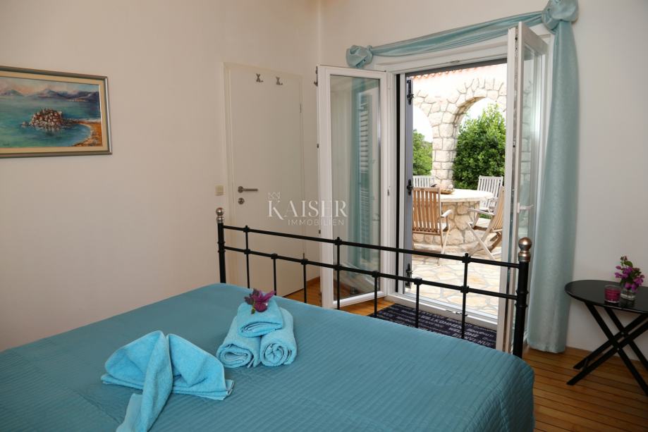 Ljetnikovac sa svojim bezbrojnim terasama i skloništima, cca. Udaljen 100 m od pješčane i najljepše uvale na otoku, savršen je za željne mira i ljubitelje sunca.