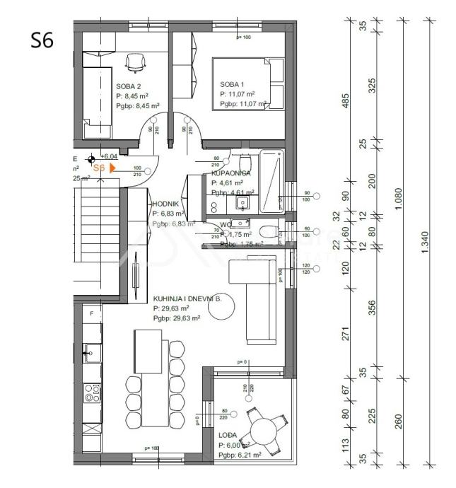 2.KAT - S6: Stan s dvije spavaće sobe i lođom