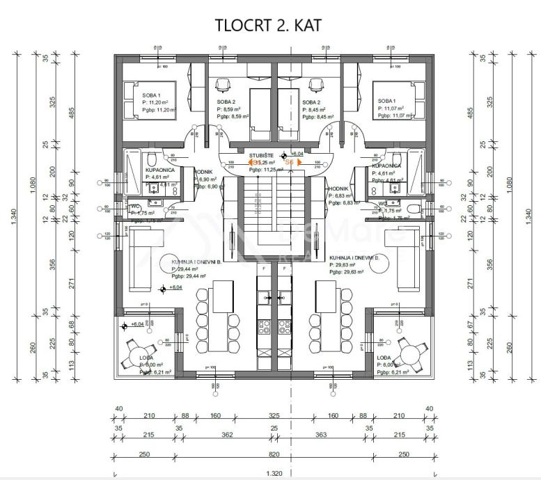 - Dnevnog boravka, kuhinje i blagovaonice - 29,63 m2
