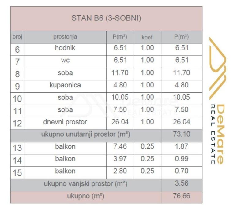 Time ukupna obračunska korisna vrijednost površine stana iznosi 77,19 m2.