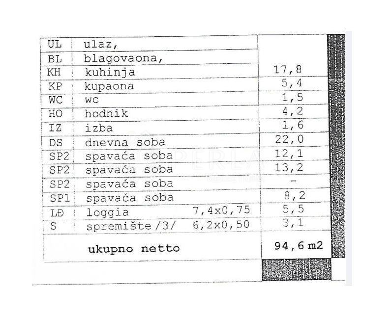 Ukupna neto površina stana iznosi 94,60 m2