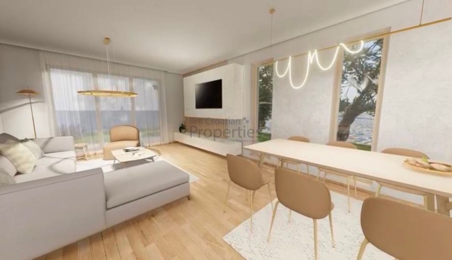 Vila se sastoji od prostranog dnevnog boravka, kuhinje, blagovaonice, 3 spavaće sobe, 3 kupaonice, vešeraja, ostave te natkrivene terase.