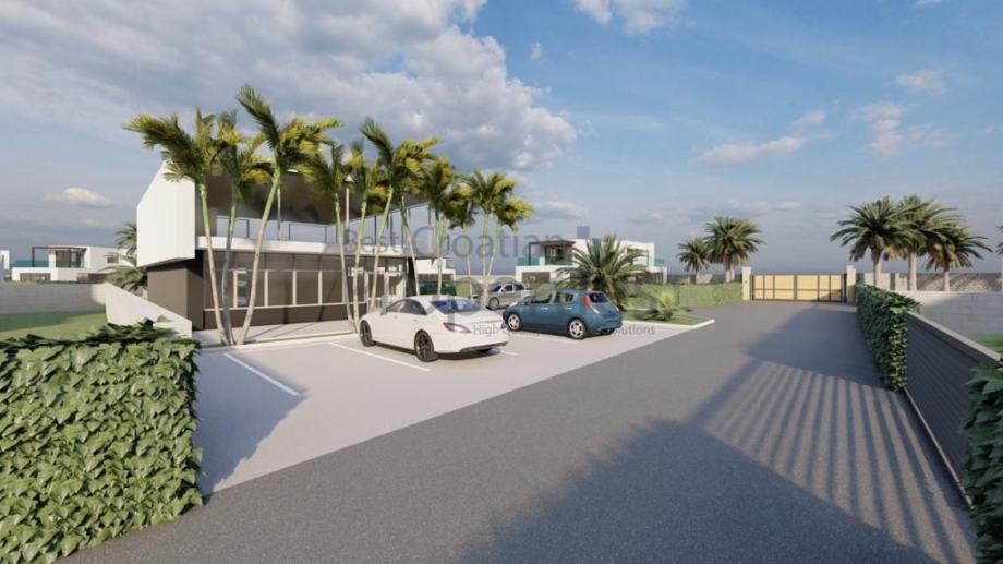 Svaka vila je ograđena zidom visine cca 165cm čime je privatnost zagarantirana. Vila je prizemnica sa ravnim nepropusnim krovom. Izolacija 10 cm stiropora.