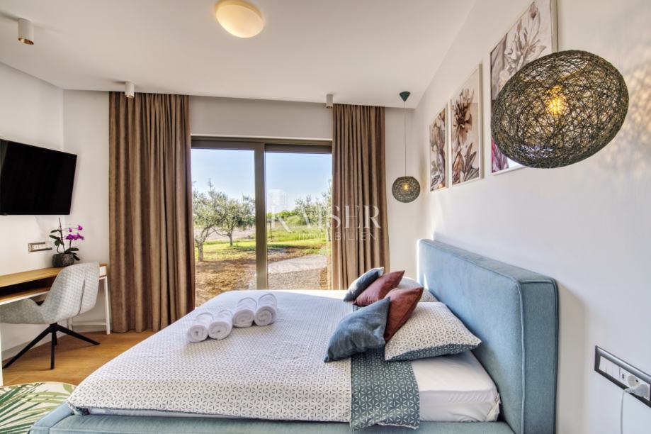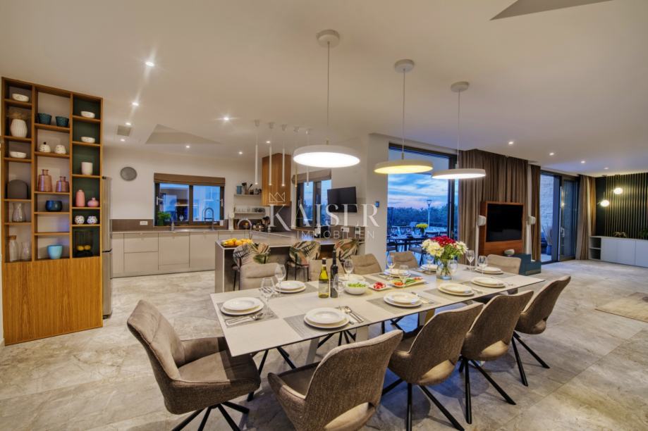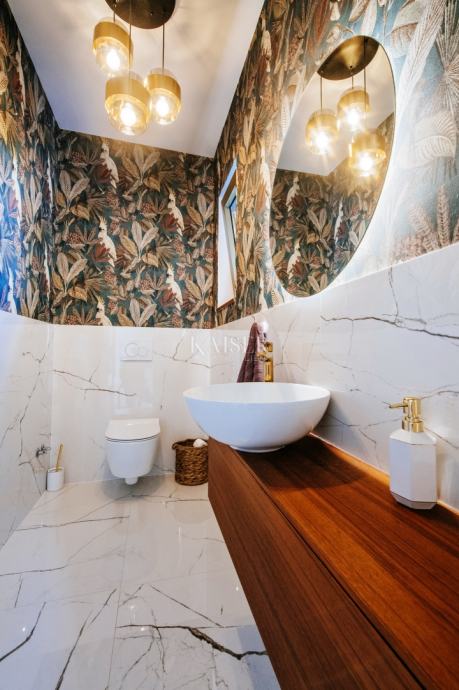Ova vila nije samo luksuzna, već je i vrhunski građena s izuzetnom pažnjom na svaki detalj, što je čini pravim primjerom kvalitetne gradnje i sofisticiranog dizajna. Svaki kutak ove vile odražava visok standard i modernu tehnologiju, pružajući udobnost i funkcionalnost u svim aspektima života.