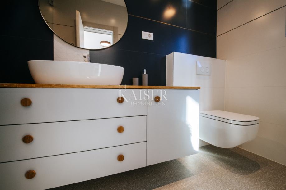 Podno grijanje u dnevnom boravku i svim kupaonicama čini prostor izuzetno udobnim i toplim tijekom hladnih mjeseci, a istovremeno omogućuje ravnomjernu raspodjelu topline i visoku energetske učinkovitost.