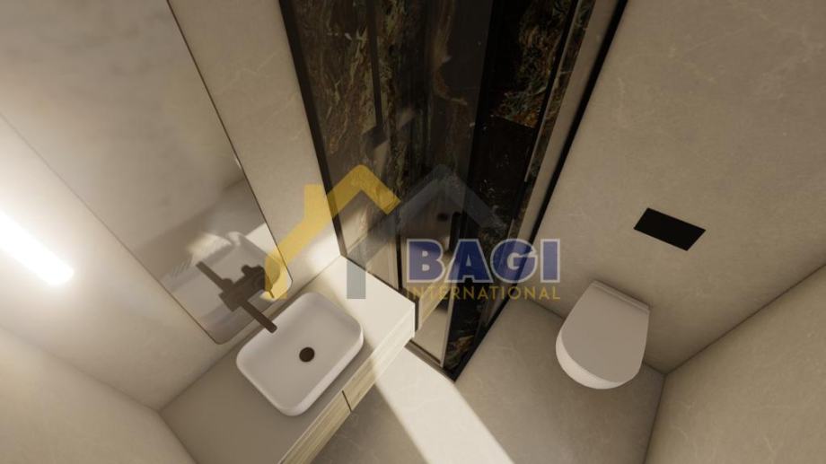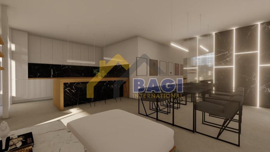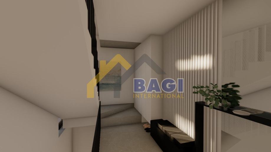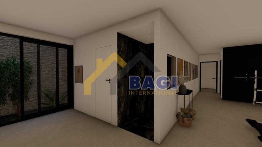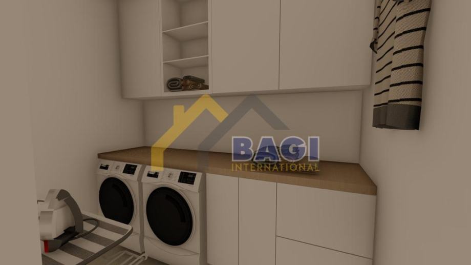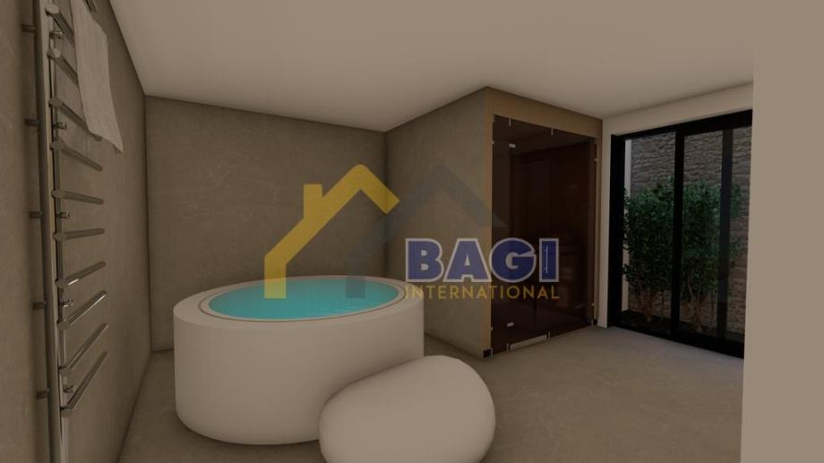 Ovaj prostrani trosoban stan ukupne površine 206,12 m2 proteže se preko podruma i prizemlja. Sastoji se od prostranog otvorenog koncepta dnevnog boravka s blagovaonicom i moderno opremljenom kuhinjom koja vodi na natkrivenu terasu i veliku okućnicu površine 200 m2 s privatnim bazenom površine 35 m2. Stan također obuhvaća tri prostrane spavaće sobe, svaka sa svojom privatnom kupaonicom, toaletom zasebno te velikim hodnikom i predsobljem. Dva parkirna mjesta osigurana su za stanare. Cijena uključuje kompletan namještaj prikazan na vizualizaciji! Očekivani energetski razred je A+.