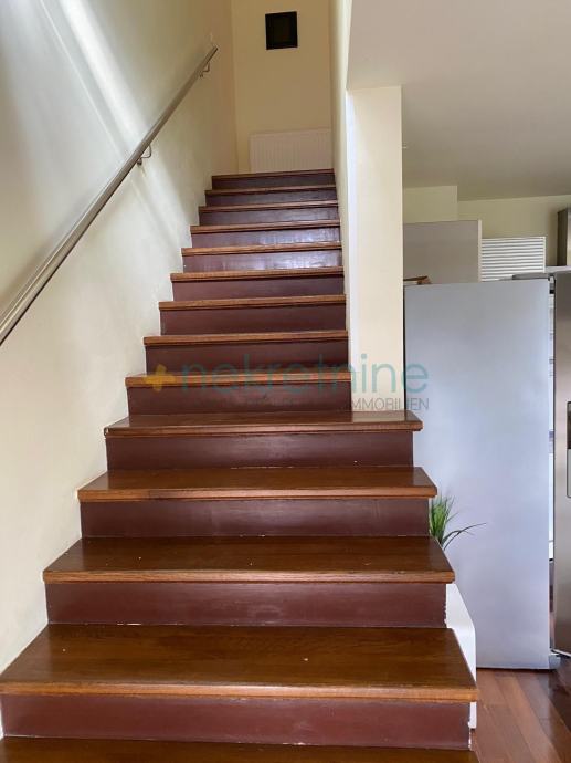 Na donjoj etaži nalazi se kuhinja povezana s dnevnim boravkom, WC te unutarnje stubište koje vodi na gornju etažu, gdje su smještene tri spavaće sobe, hodnik, kupaonica i terasa – savršena za jutarnju kavu ili večernji odmor.