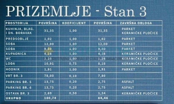 STAN S3 neto stambene površine od 69,82 m2 nalazi se u prizemlju zgrade i sastoji se od :