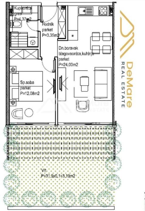 Stanu pripada prekrasna vanjska terasa i uređeni vrt cca. 32 m2.