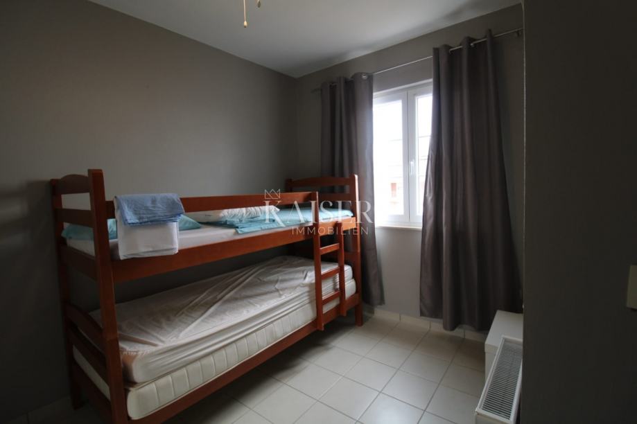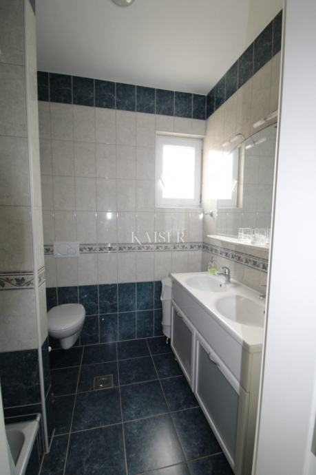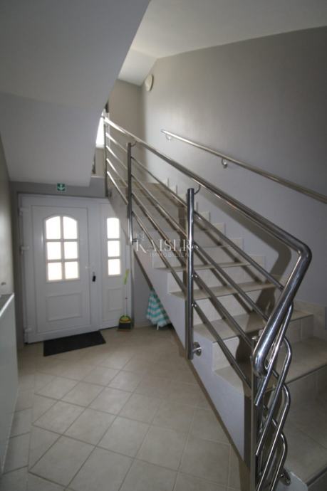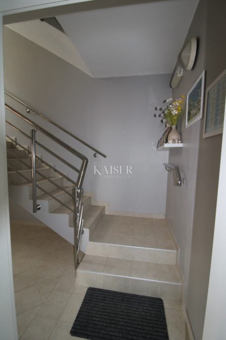 U prizemlju su dvije udobne spavaće sobe, svaka s vlastitim stilom i toplinom, savršene za miran odmor. Također, tu su kupaonica, ostava i tehnička soba, koji dodatno podižu praktičnost prostora. Poseban luksuz pruža garaža s direktnim ulazom u kuću, čime je osigurana potpuna privatnost i sigurnost.