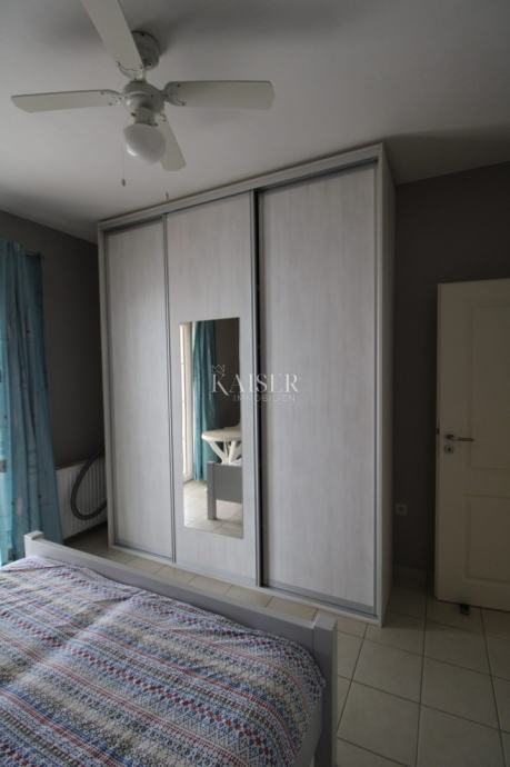 Prvi kat ove impresivne nekretnine čine dva apartmana različitih veličina. Apartman od 40 m2 koncipiran je kao funkcionalna cjelina s dobro iskorištenim prostorom, dok veći apartman od 60 m2 nudi dodatnu prostranost i udobnost. Oba apartmana imaju svoje balkone, koji omogućuju nesmetan užitak u pogledu na more i okolni mediteranski krajolik.