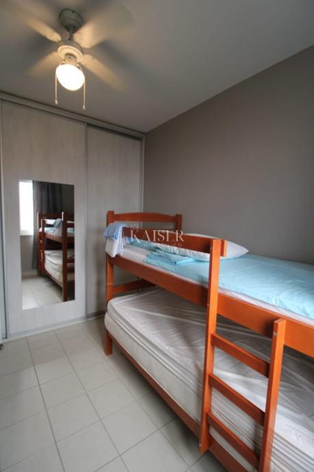 Poseban segment prizemlja čini unutarnje stubište koje vodi na gornju etažu, gdje se nalaze još dvije prostrane spavaće sobe sa zajedničkom kupaonicom. Ove sobe odlikuje mir i intima, a jedna od njih izlazi na prostrani balkon, s kojeg se pruža spektakularan pogled na more, čineći ga savršenim kutkom za uživanje u meditativnim trenucima.
