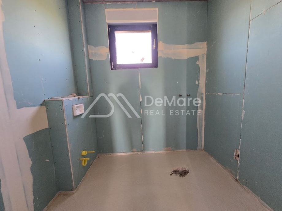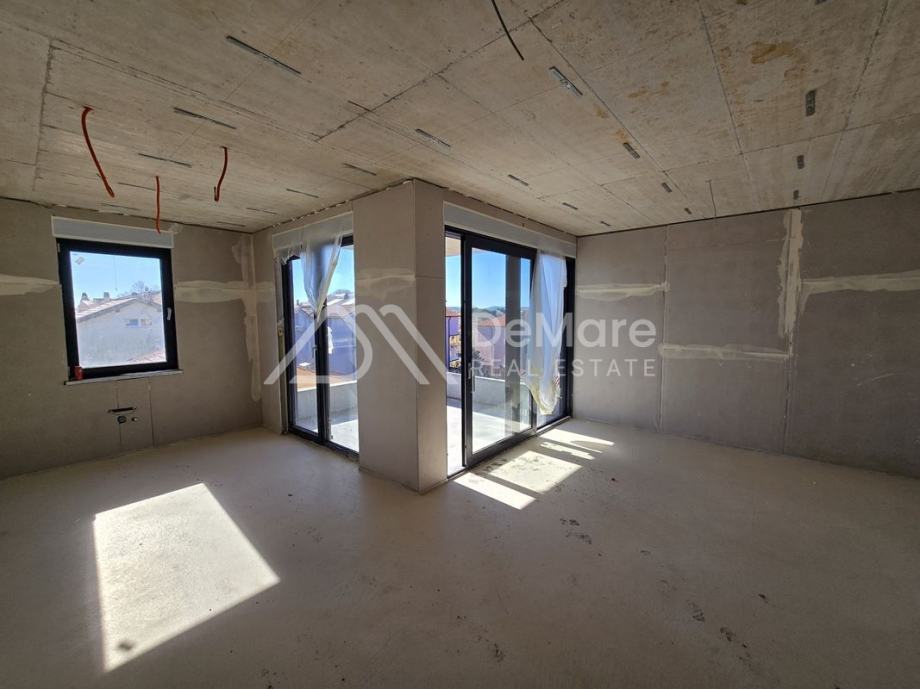 Prekrasan nov, moderan apartman na atraktivnoj lokaciji, u blizini mora i plaže; zauzima polovinu etaže na prvom katu zgrade. Dnevni boravak je samo staklenom kliznom stijenom odvojen od natkrivene terase koja ima pogled na more.